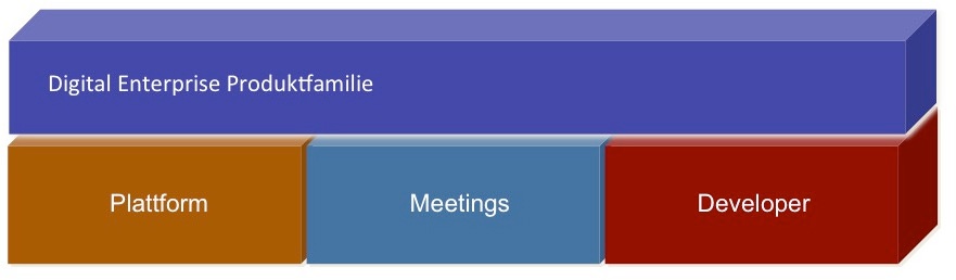 Digital Enterprise kann in vielen Bereichen und Projekten ohne weitere Ergänzungen verwendet werden. Aufbauend auf der umfangreichen Basis lassen sich aber auch projekt- bzw. anwendungsspezifische Erweiterungen oder Varianten erstellen. Die Produktfamilie enthält neben der Plattform auch weitere innovative Produkte.